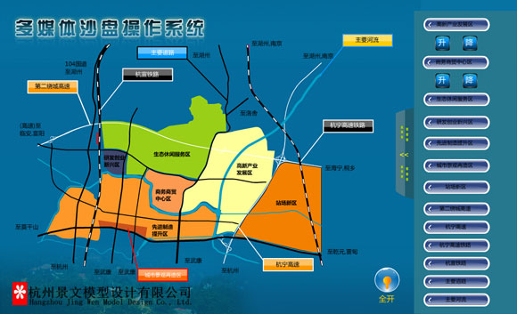 杭州景文模型設計有限公司近期完成了德清經濟開發區多媒體沙盤模型升級改造,系統優化了控制軟件,增加了自動解說等功能。